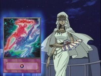Marik remembers Ishizu’s dueling strategies very well. She may have defeated him when he was a weak child, but now Ishizu doesn’t stand a chance against him! Marik mentally tells Ishizu that she will never defeat him. Ishizu knows Marik is wrong because she believes there is still good inside of Marik. She promises in the name of the Tombkeepers that her brother will be saved. Marik says that his good side has been getting in his way, so it’s time to banish him away. The good Marik cries out for his sister as he disappears.