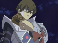 Roland announces that if the eighth duelist doesn’t show up in the next five minutes, Kaiba will declared the winner. Kaiba loads his deck into his duel disk and makes his way up to the platform. Yugi tries to tell Kaiba something, but Kaiba cuts him off and firmly states that his tournament stops for no one. He refuses to land the blimp and bring Mai to a hospital. When Kaiba steps into the arena, he tells himself that soon Marik’s Egyptian God card will be his. Then Kaiba notices that his opponent still hasn’t arrived yet. Winning this duel will be easier than he thought!