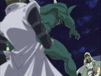 Kaiba notices Virus Cannon in his hand, thinking it’s perfect. When he plays it, Ishizu won’t know what hit her! Marik thinks watching Ishizu toy with Kaiba is quite amusing. He always knew she had a dark side. Kaiba draws and summons Dark Gremlin in defense mode. Then he places Virus Cannon face down and ends. Ishizu draws a Trap card but states she doesn’t need it yet. So she ends without doing anything. Kaiba finds it sad how Ishizu stopped him from attacking for three turns, yet she isn’t doing anything to destroy him. Ishizu says Kaiba will draw the card that will lead to his destruction in two turns. Kaiba laughs, thinking Ishizu is more insane than he initally thought! He claims Duel Monsters is about skill and power, not fairy tales and fate. Kaiba draws and saves the card.